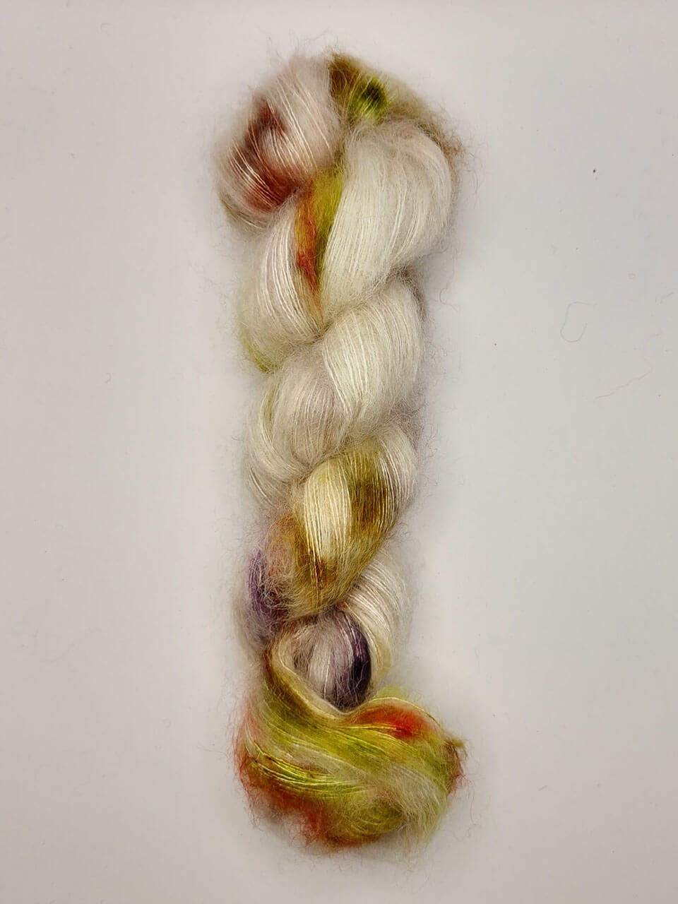 Handdyed silki mohair garnið er hægt að nota eitt og sér, einfalt eða tvöfalt eða sem fylgiþráð með öðru garni eins og Majo merino eða Hipknit merino.