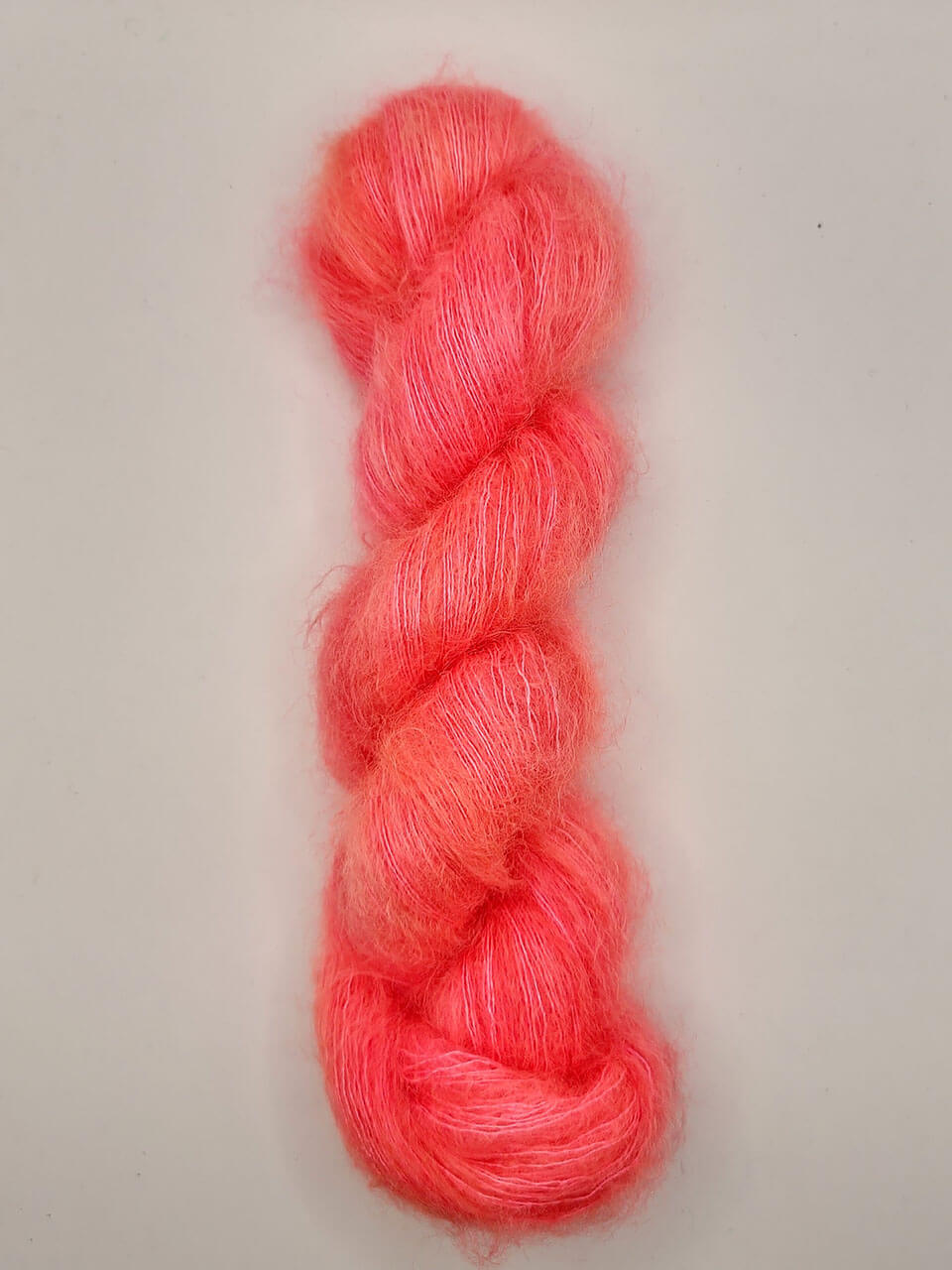 Handdyed silki mohair garnið er hægt að nota eitt og sér, einfalt eða tvöfalt eða sem fylgiþráð með öðru garni eins og Majo merino eða Hipknit merino.