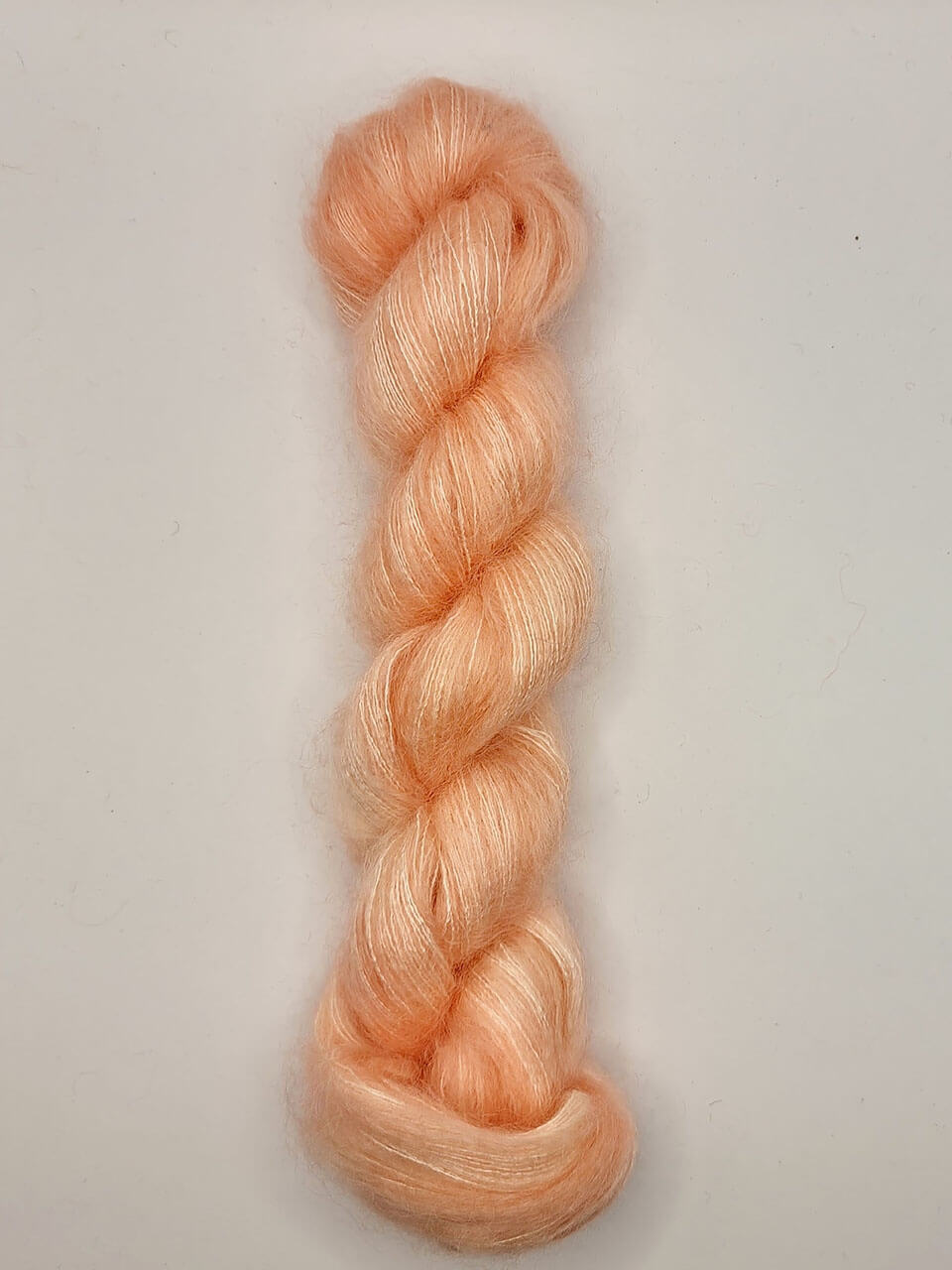 Handdyed silki mohair garnið er hægt að nota eitt og sér, einfalt eða tvöfalt eða sem fylgiþráð með öðru garni eins og Majo merino eða Hipknit merino.