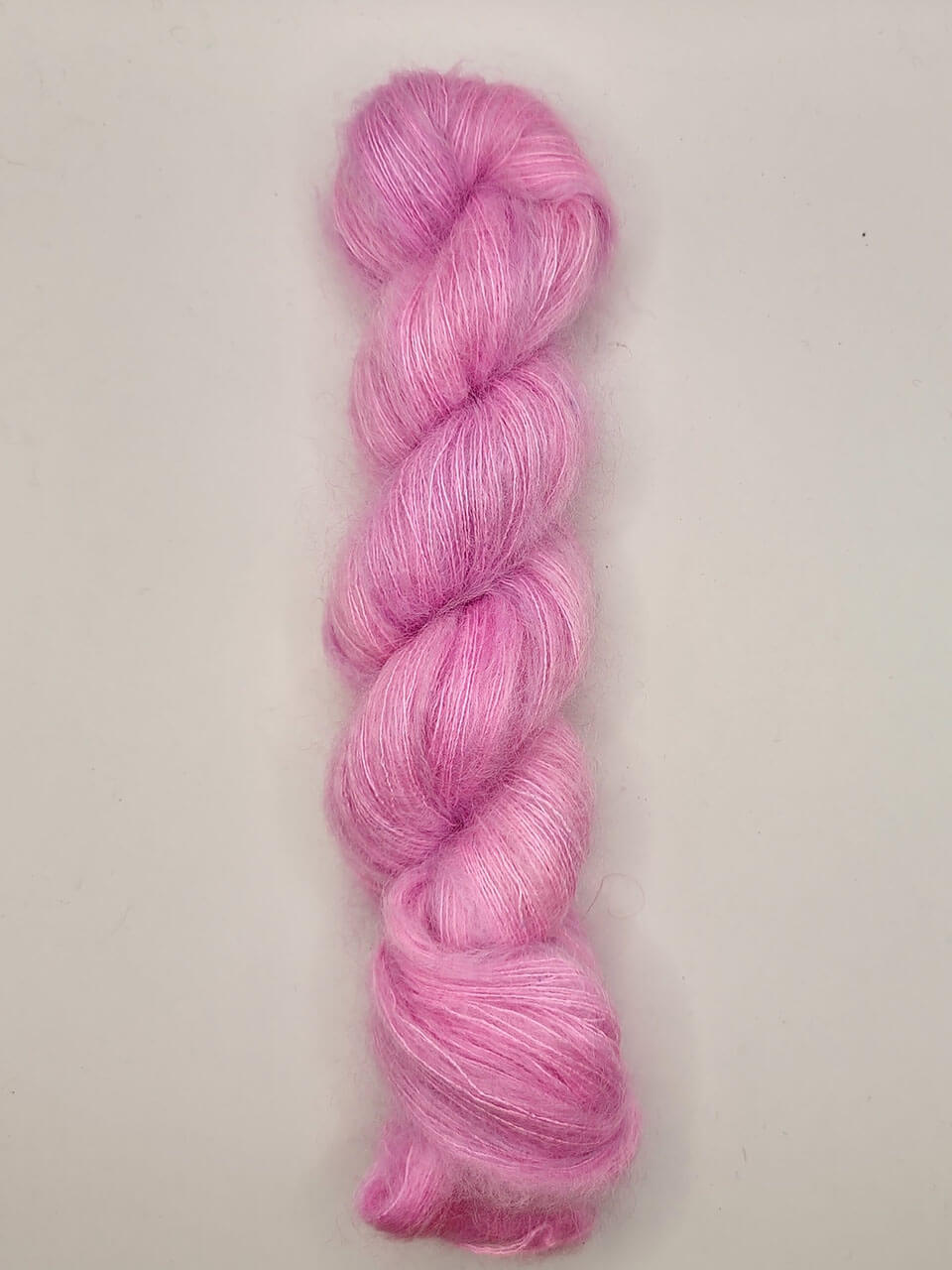 Handdyed silki mohair garnið er hægt að nota eitt og sér, einfalt eða tvöfalt eða sem fylgiþráð með öðru garni eins og Majo merino eða Hipknit merino.