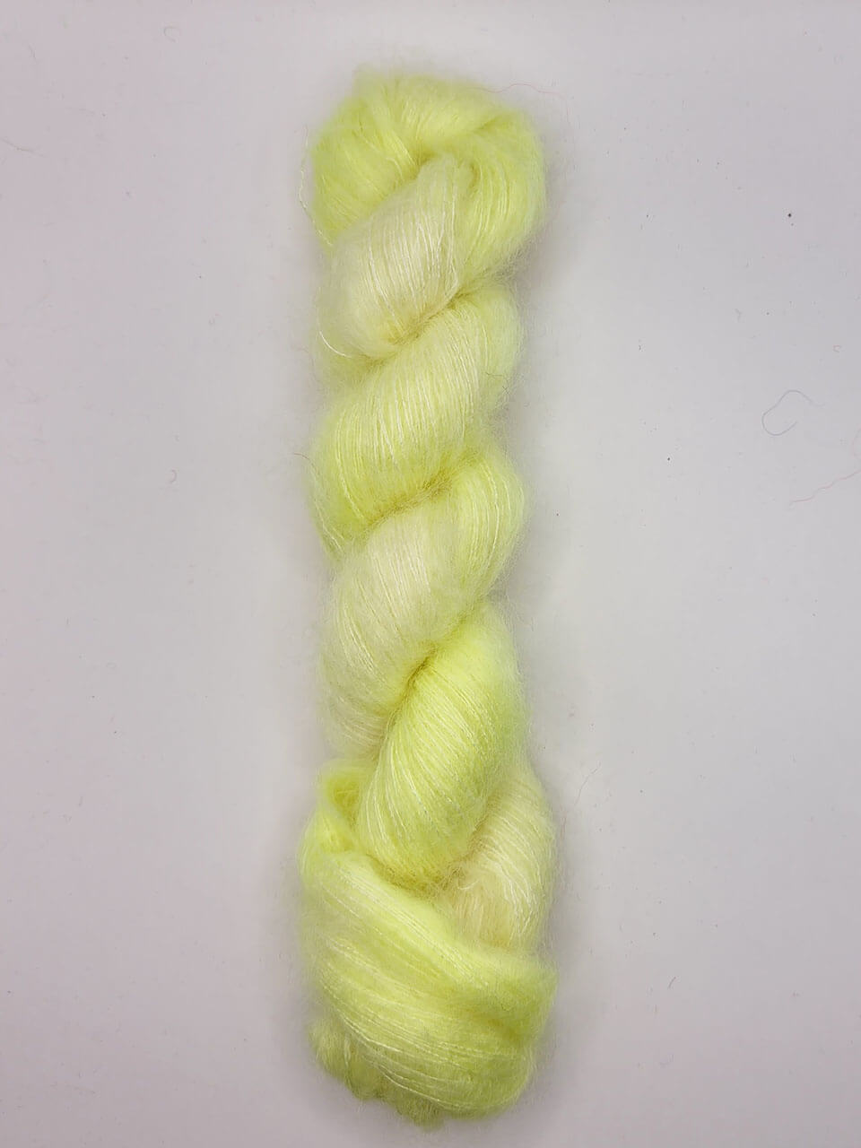 Handdyed silki mohair garnið er hægt að nota eitt og sér, einfalt eða tvöfalt eða sem fylgiþráð með öðru garni eins og Majo merino eða Hipknit merino.