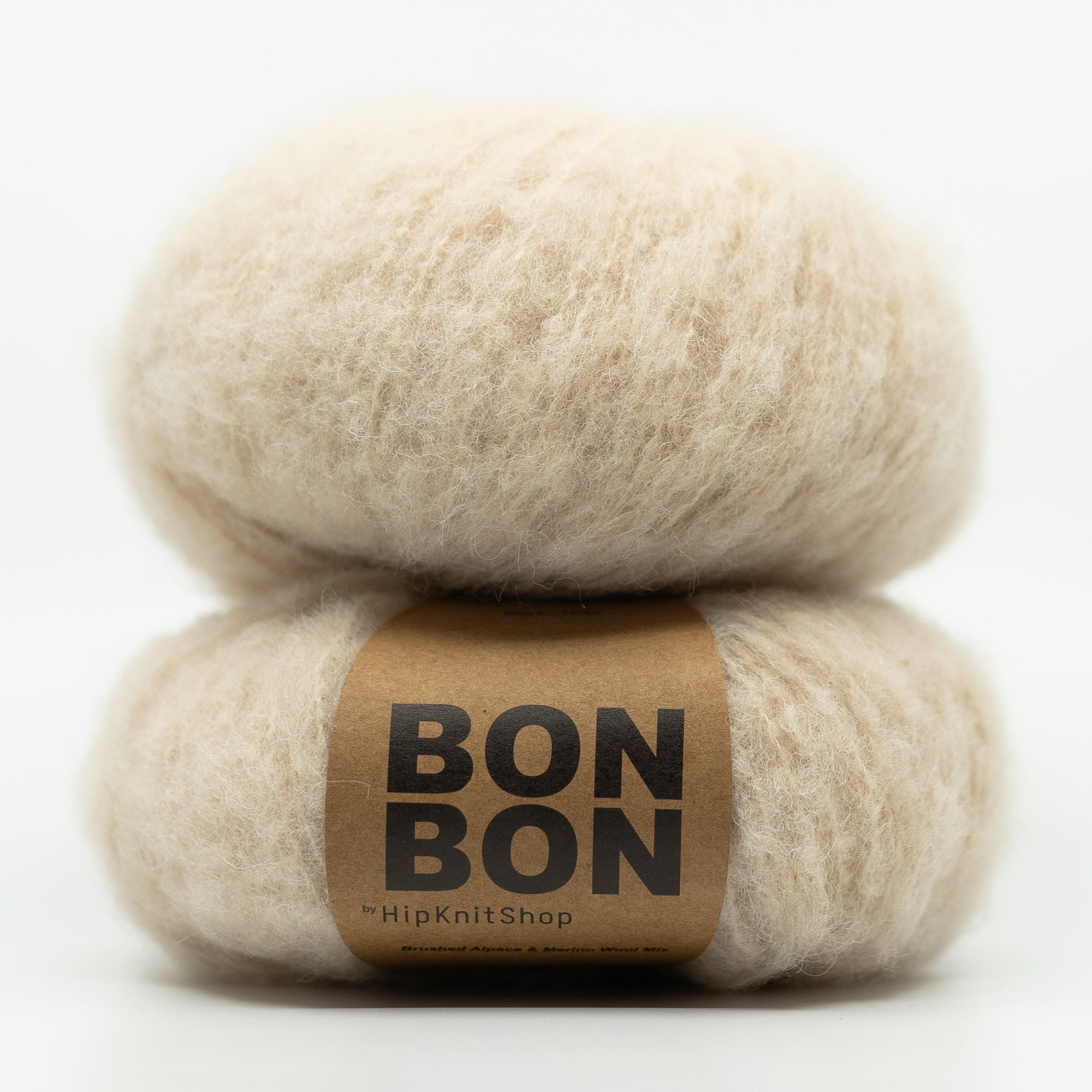 BonBon garnið er einstaklega mjúkt loðið og loftkennt garn blandað af alpakka og merinoull. BonBon er burstað með sterkum nælonþráðum sem gerir það að verkum að þræðirnir eru sterkari og slitna síður.