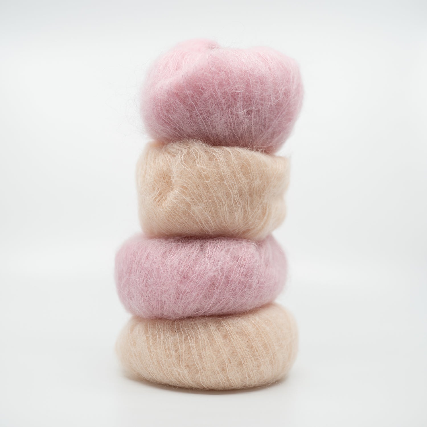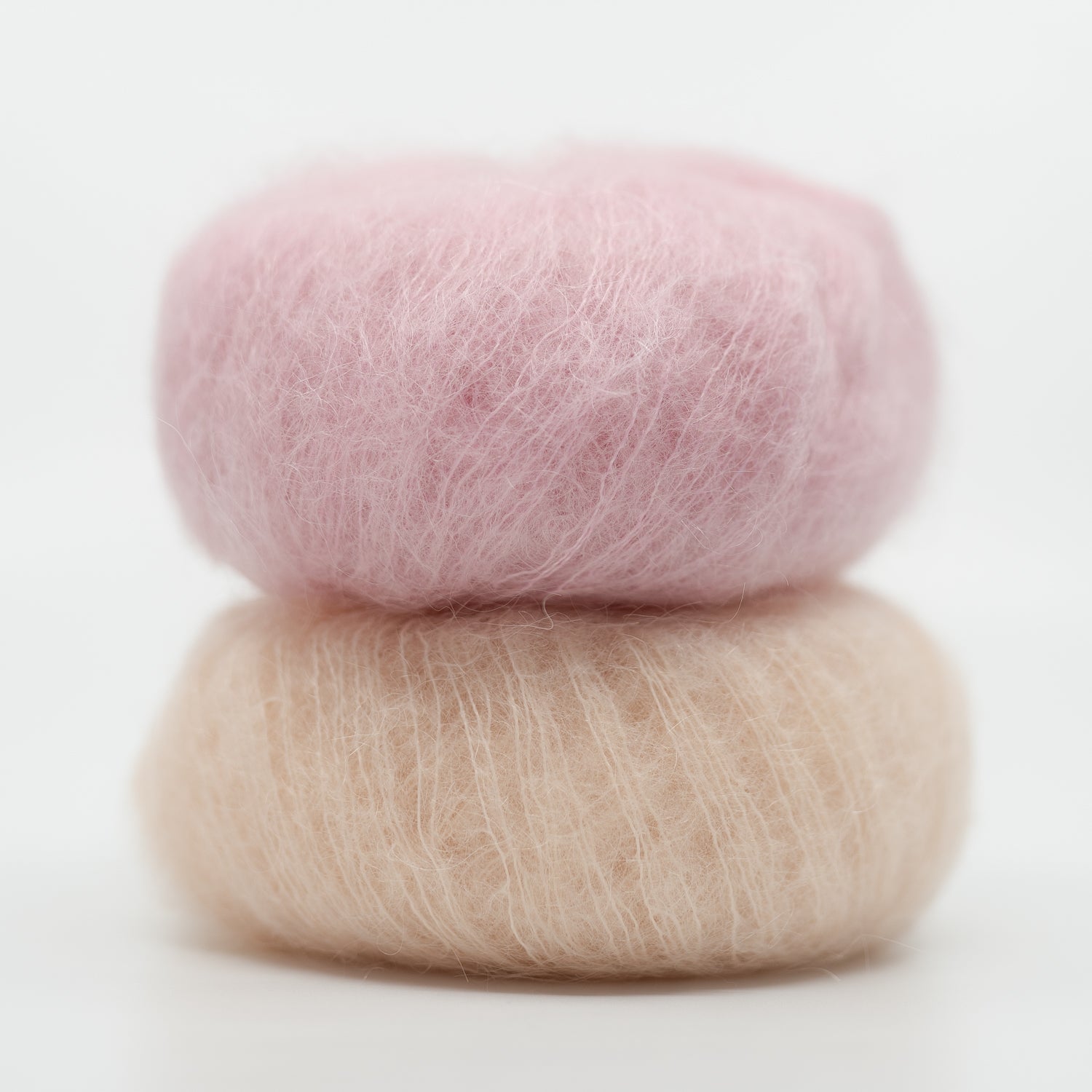 Mohair er algjört lúxus garn og dásamlega mjúkt og létt garn. Fallegt eitt og sér en ákaflega skemmtilegt að blanda því með eins og t.d. Hip Wool eða Pop Merino.